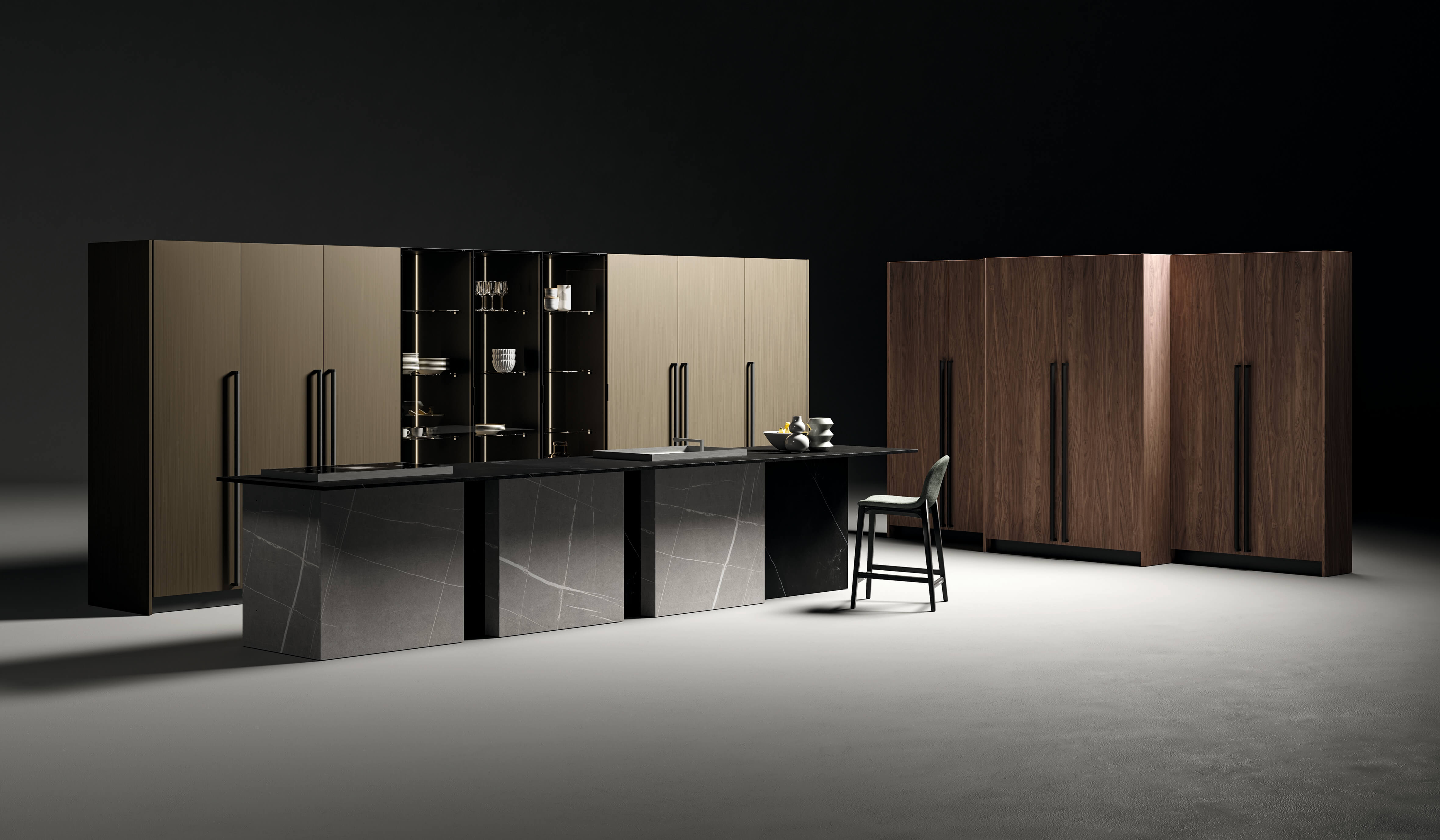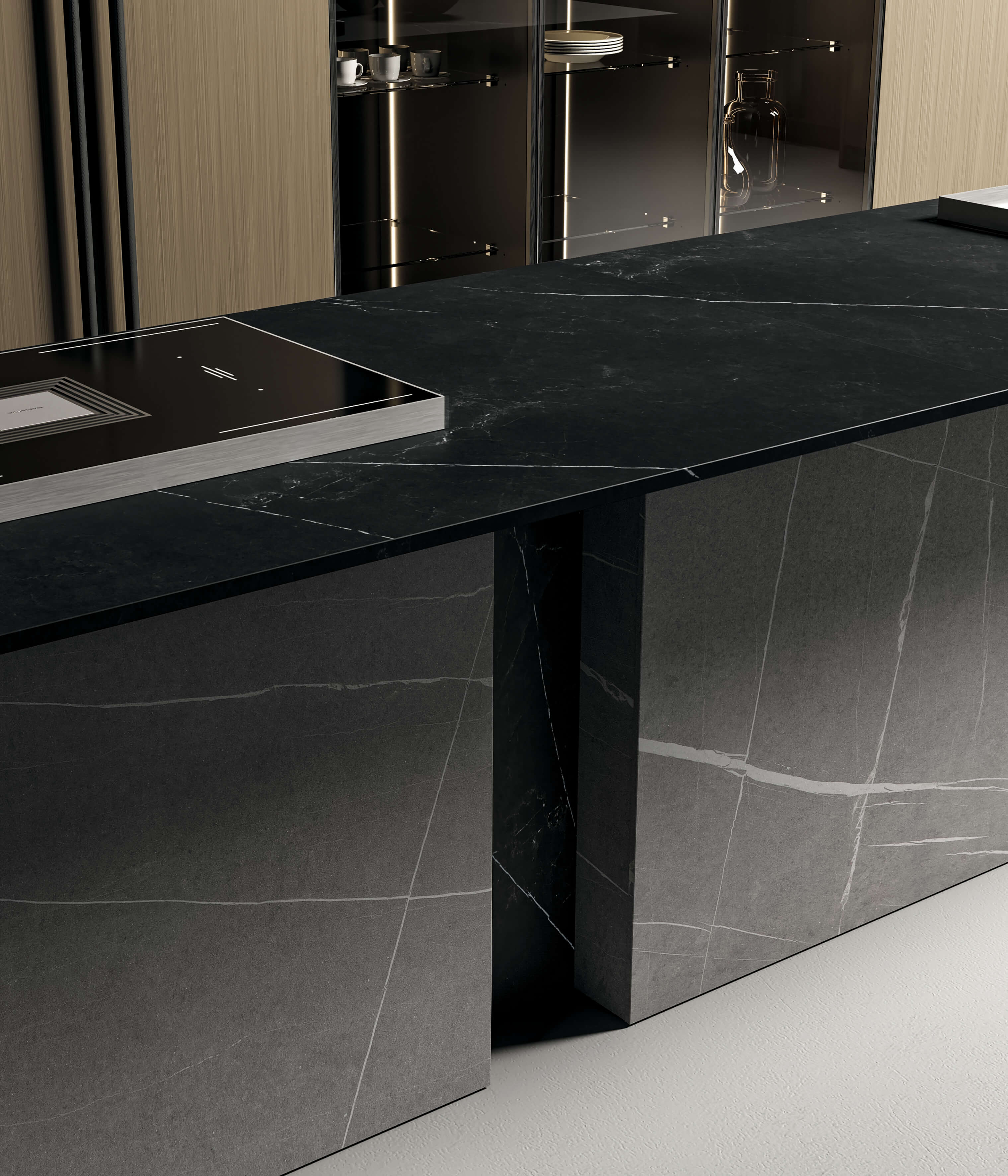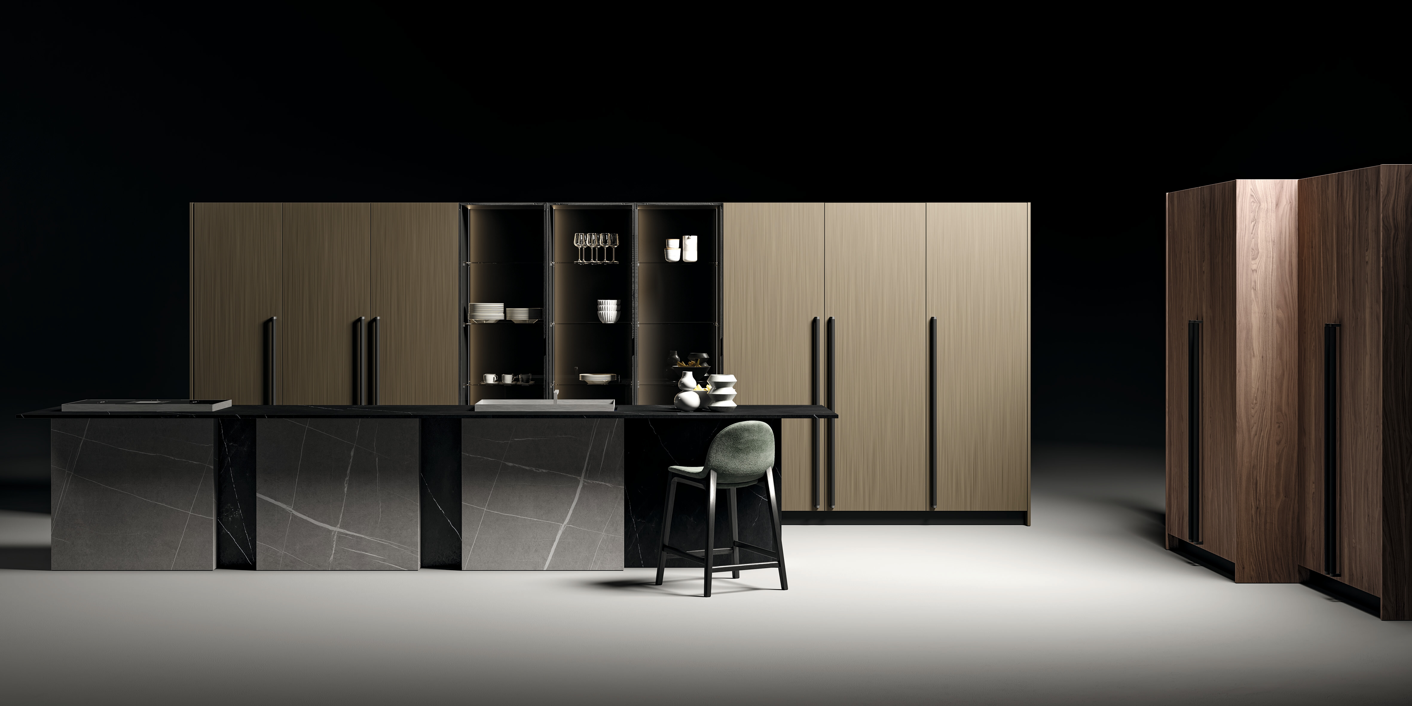 Начиная от скульптурных деталей, таких как разделители, которые способствуют созданию уникального объекта, или керамический корпус, страсть к материалу ярко проявляется: настоящие произведения искусства, которые не только функциональны, но и эстетичны. Игра материалов, света и тени придает композиции легкость и создает необычную пространственность, превращая кухонную мебель в визуальное и тактильное переживание. Детали, позволяющие материалу достичь своего наивысшего выражения, передающие его уникальный характер благодаря точности исполнения и мастерству.