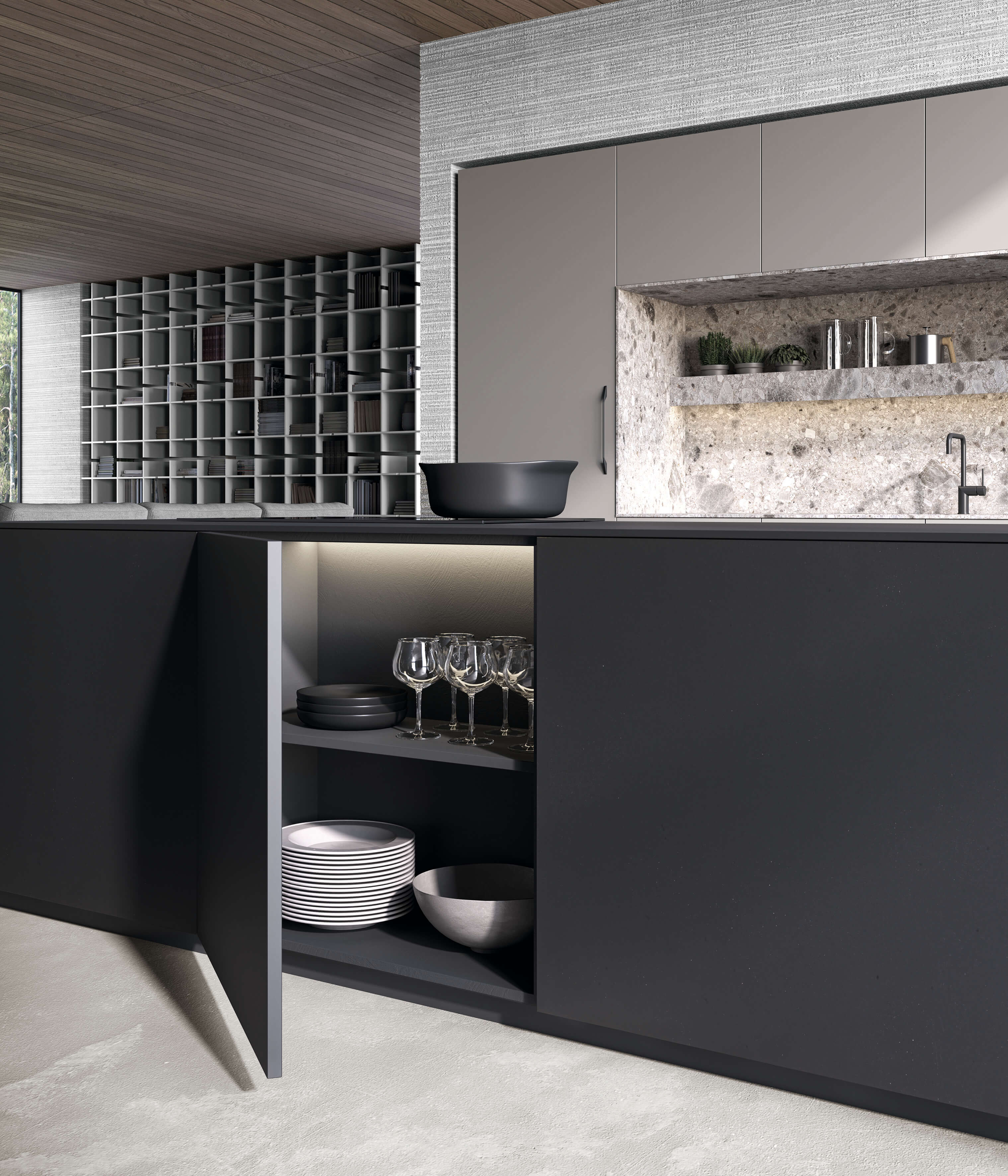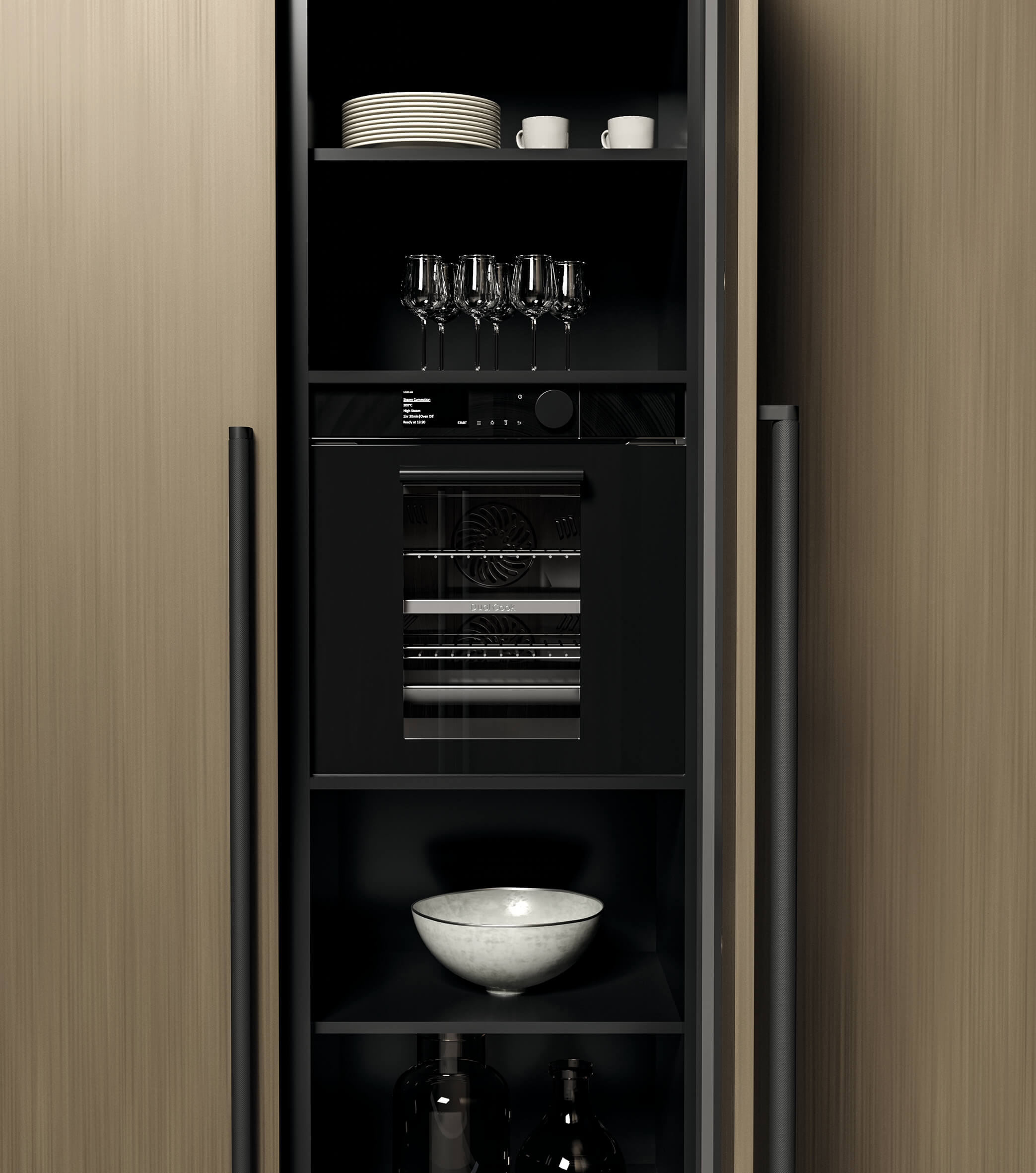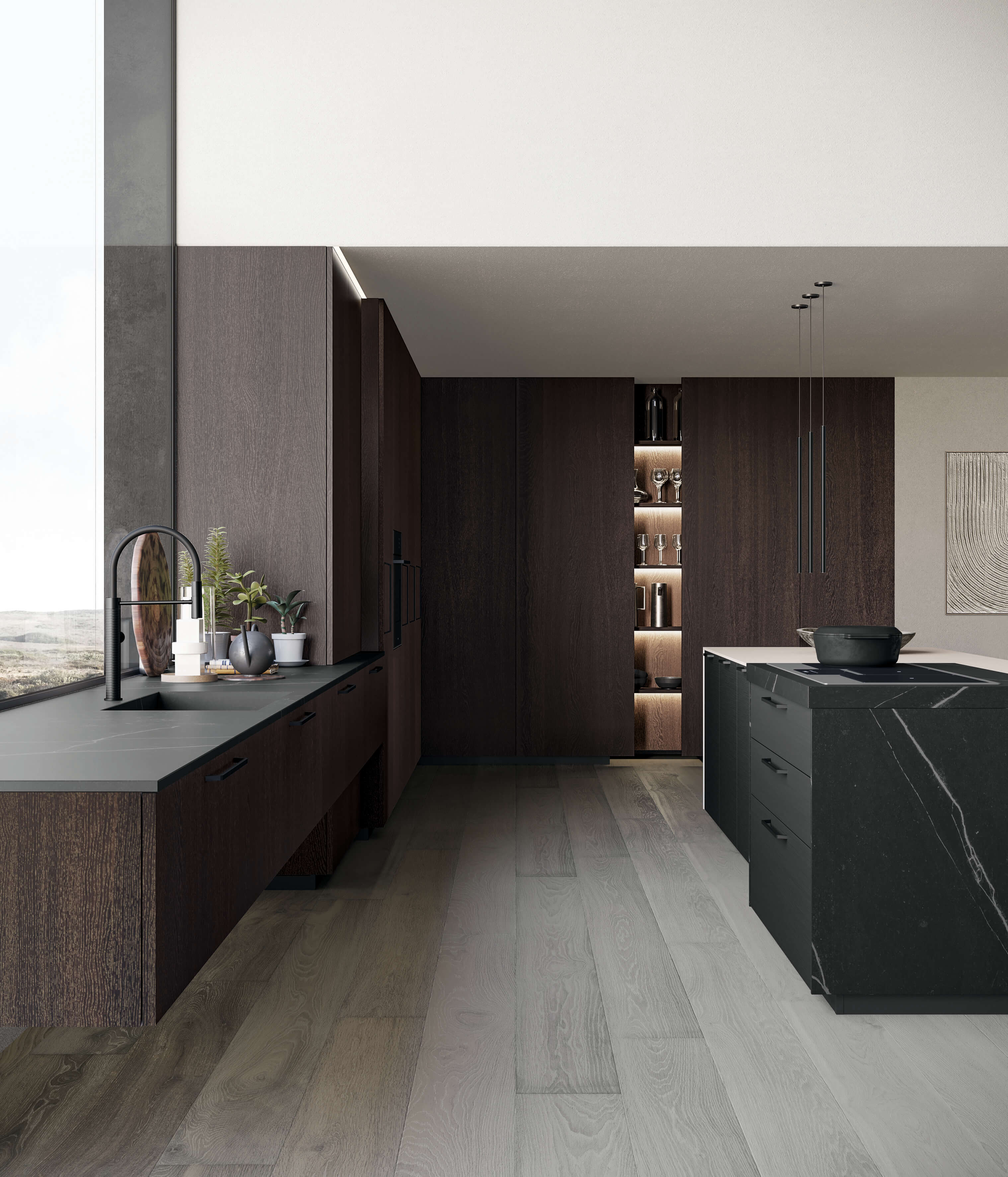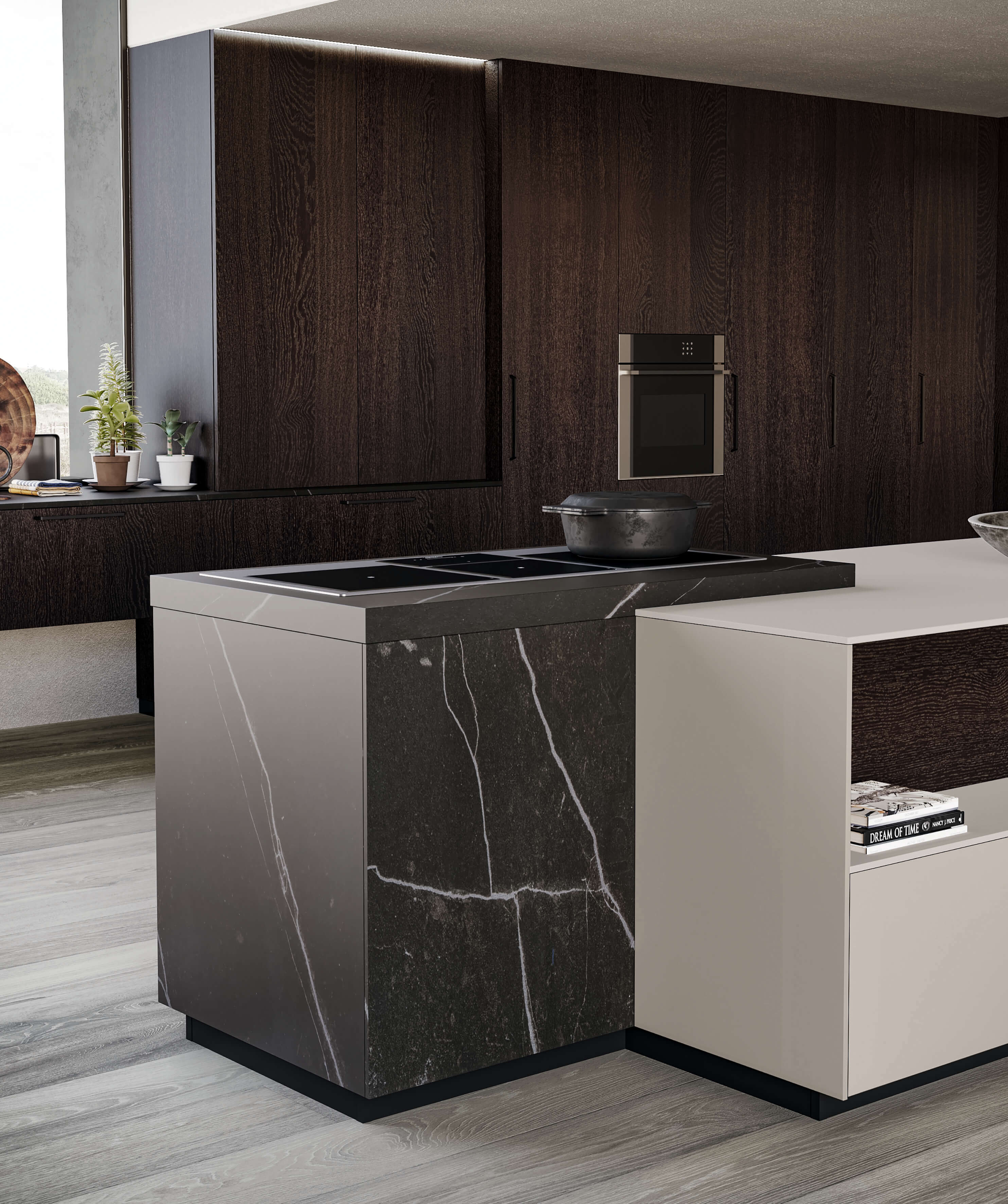 Начиная от скульптурных деталей, таких как разделители, которые способствуют созданию уникального объекта, или керамический корпус, страсть к материалу ярко проявляется: настоящие произведения искусства, которые не только функциональны, но и эстетичны. Игра материалов, света и тени придает композиции легкость и создает необычную пространственность, превращая кухонную мебель в визуальное и тактильное переживание. Детали, позволяющие материалу достичь своего наивысшего выражения, передающие его уникальный характер благодаря точности исполнения и мастерству.