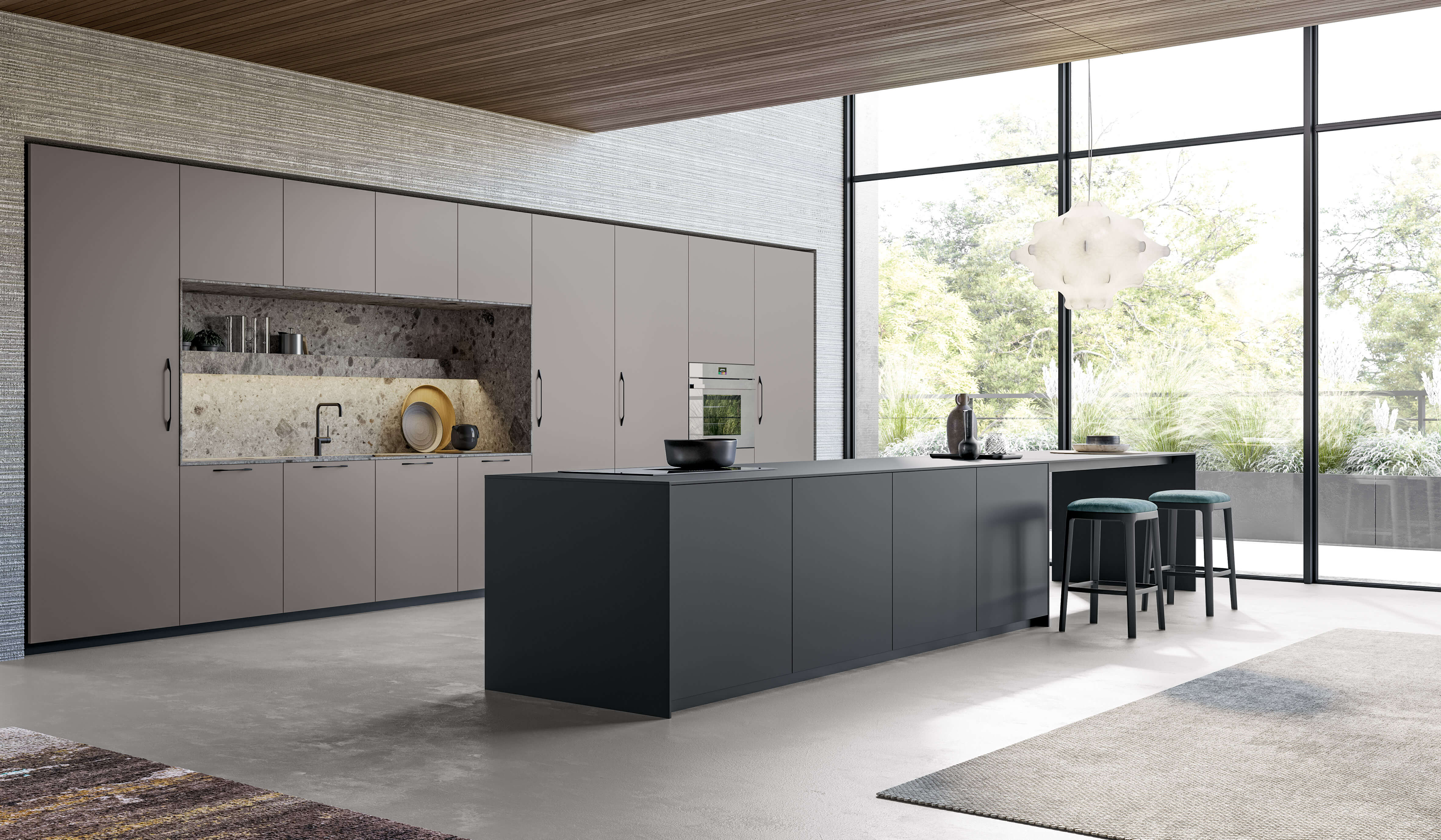 Отличительной чертой является ручка, обеспечивающая практичный и функциональный захват и добавляющая нотку эксклюзивности всей композиции, обрамляя эту кухню изысканным стилем.