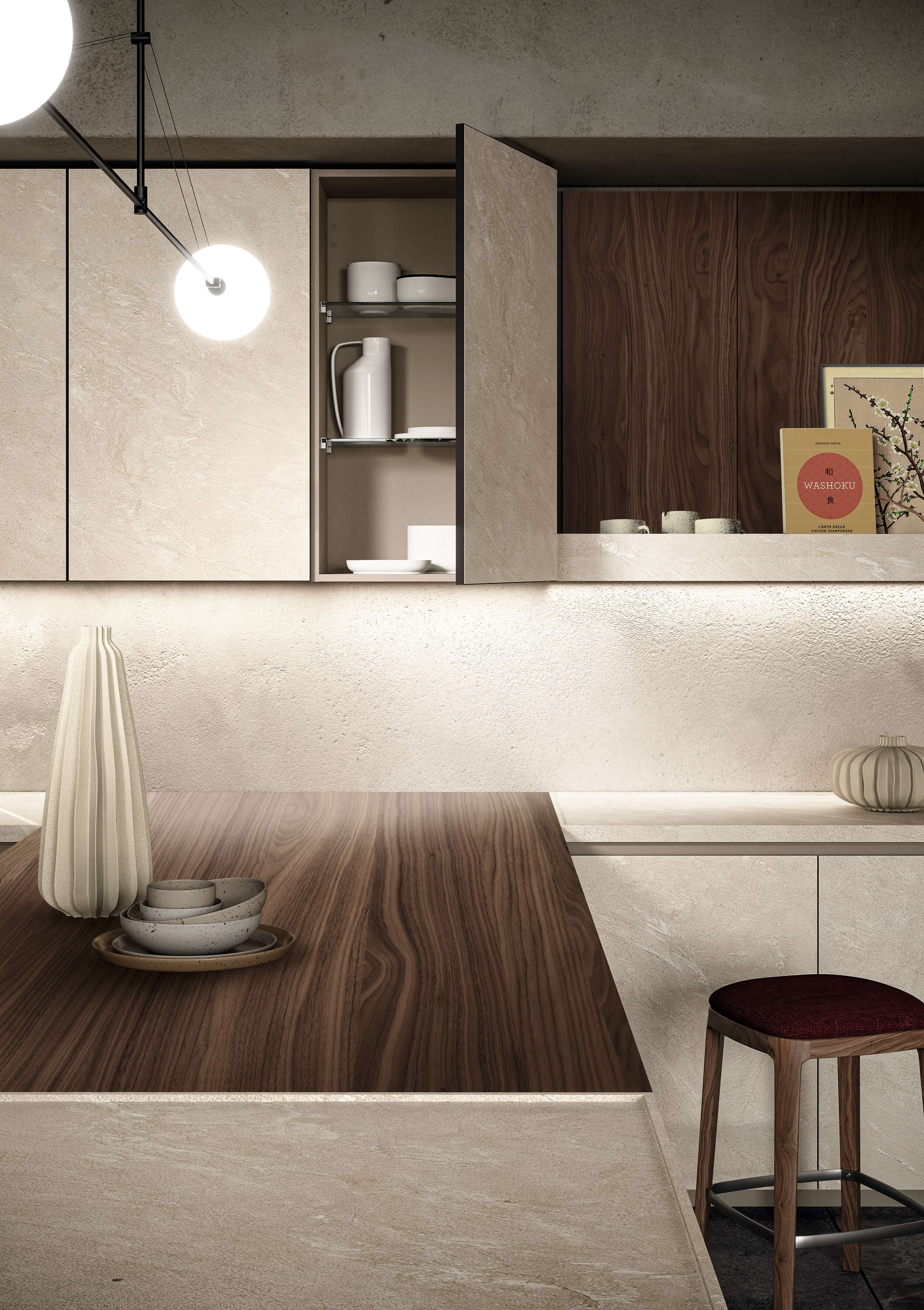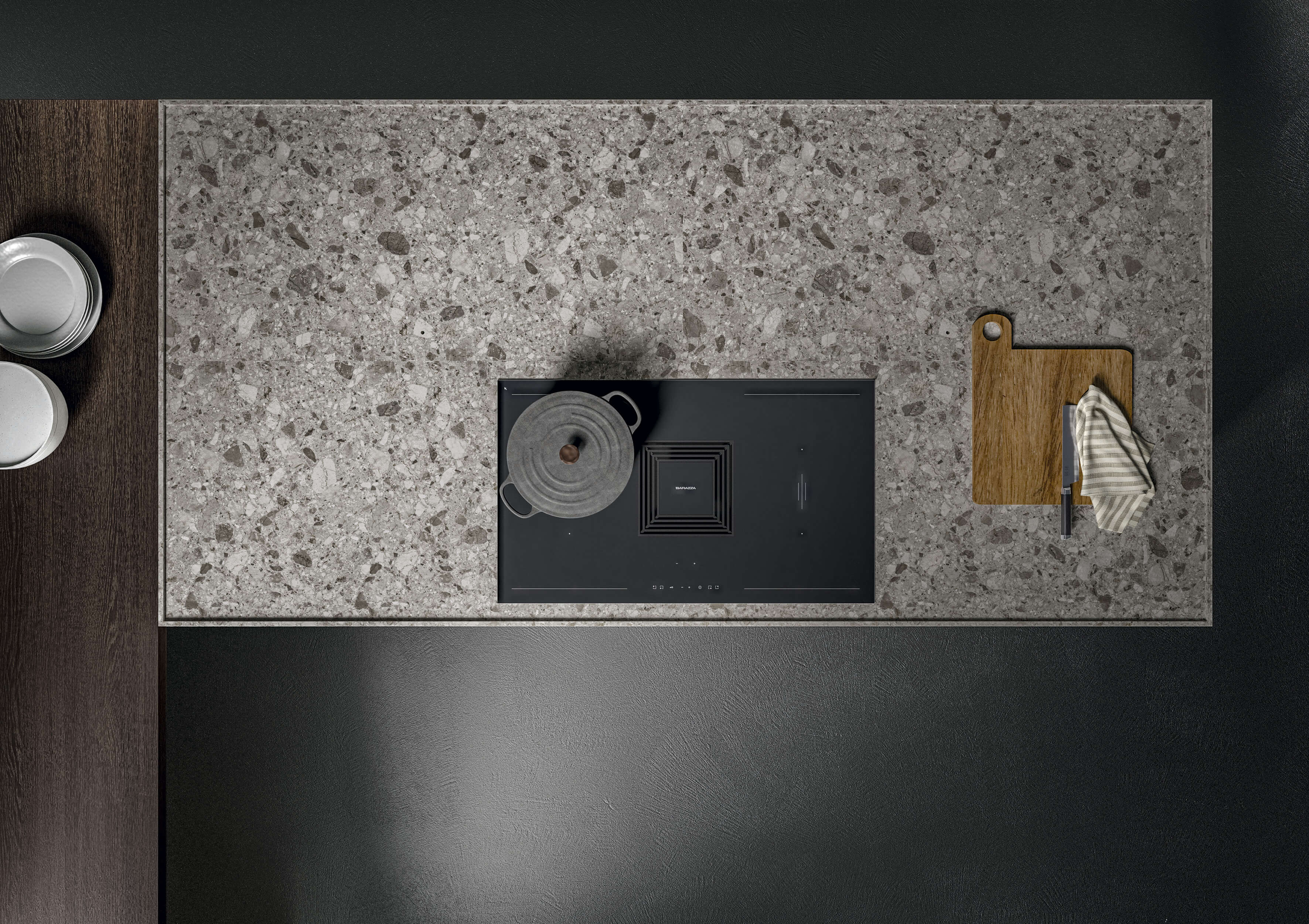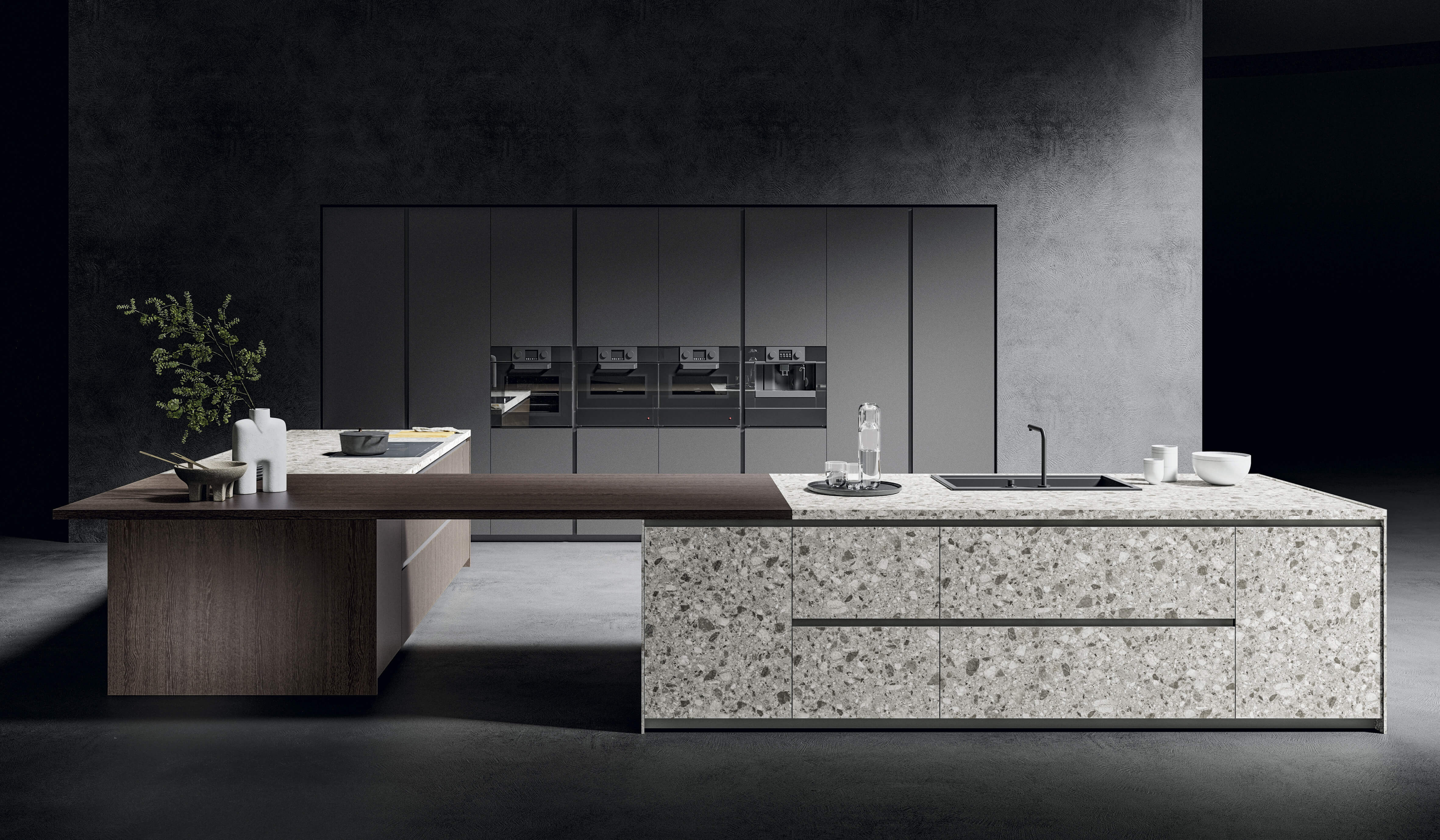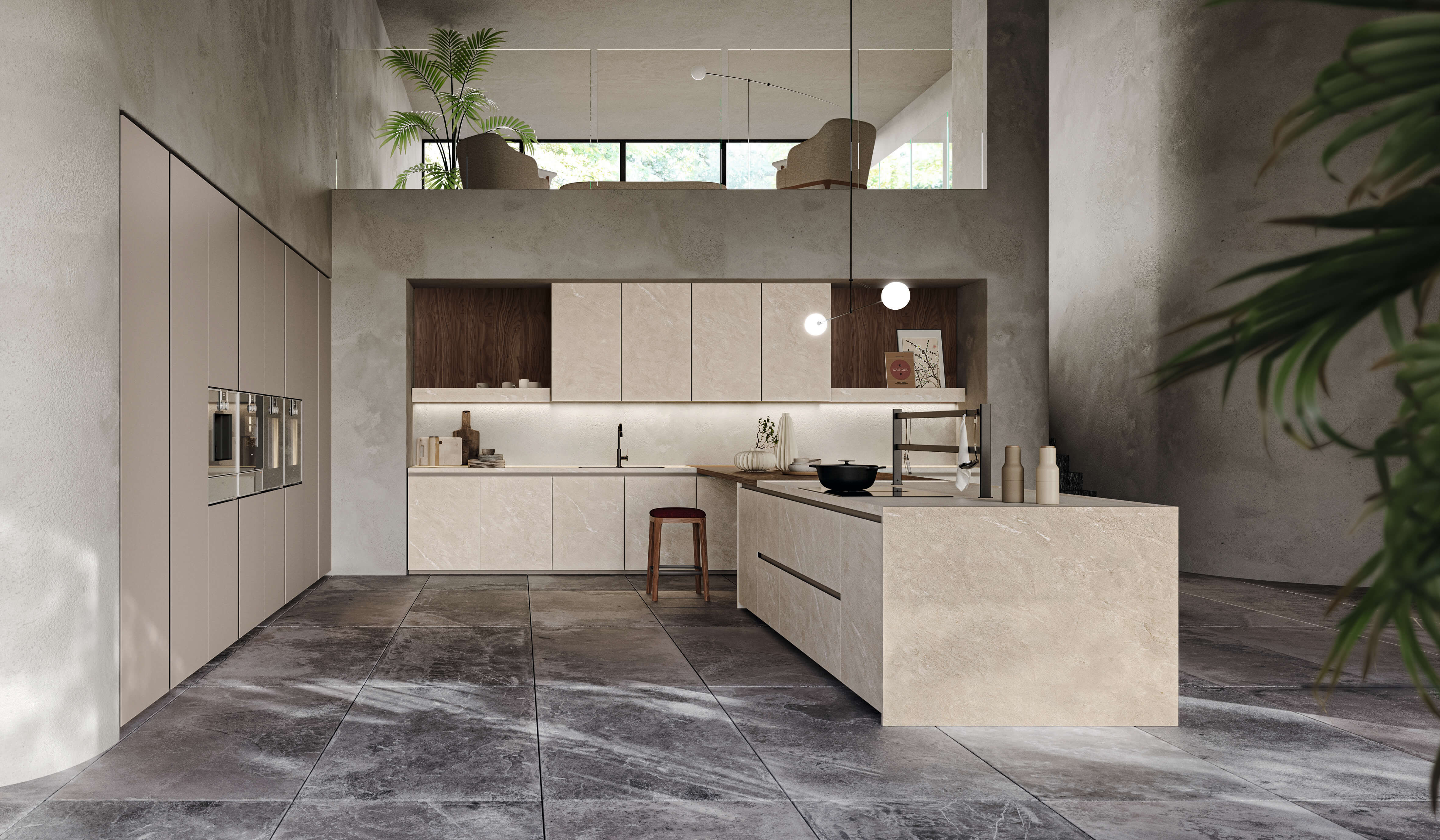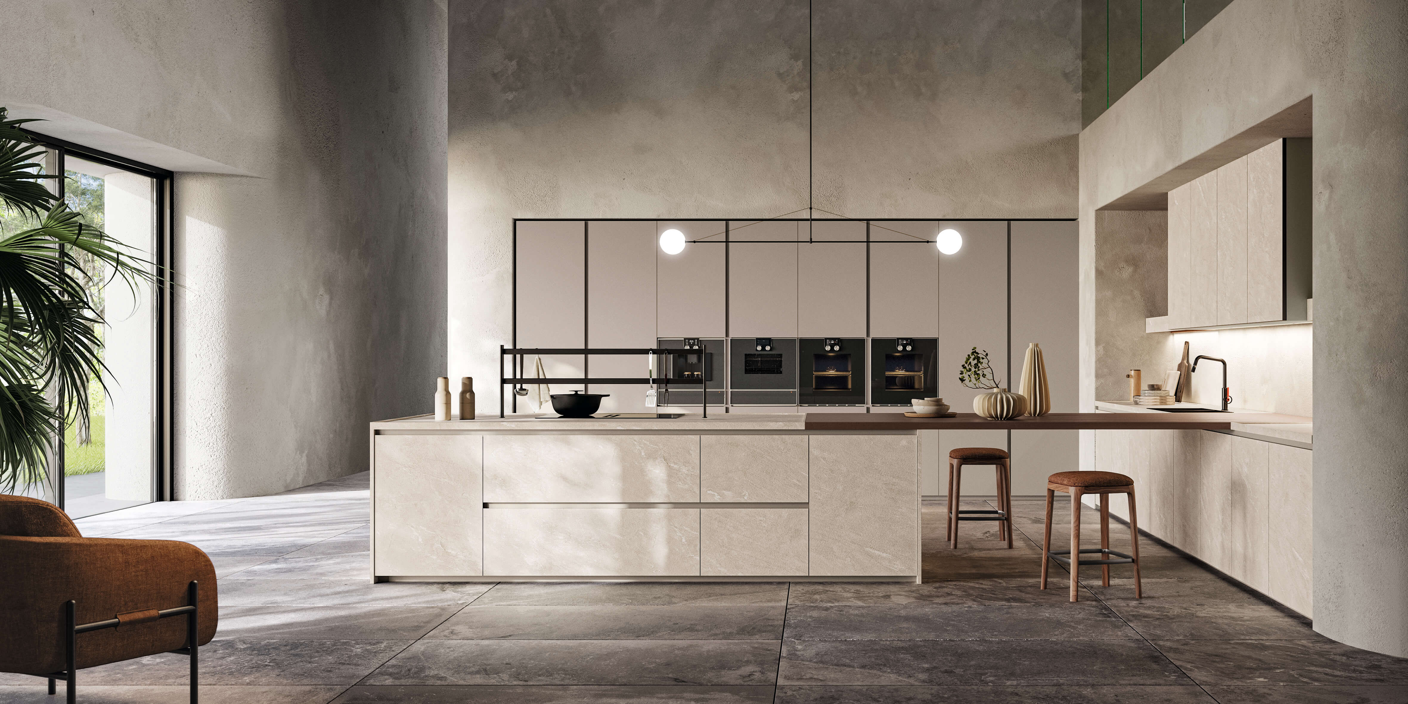Кухня Torino Elite воплощает в себе суть проекта, который плавно перемещается между гармоничными пропорциями, изысканной толщиной и элегантностью инновационных материалов, сочетающихся со сложной технологией дверного полотна из алюминиевой рамы.