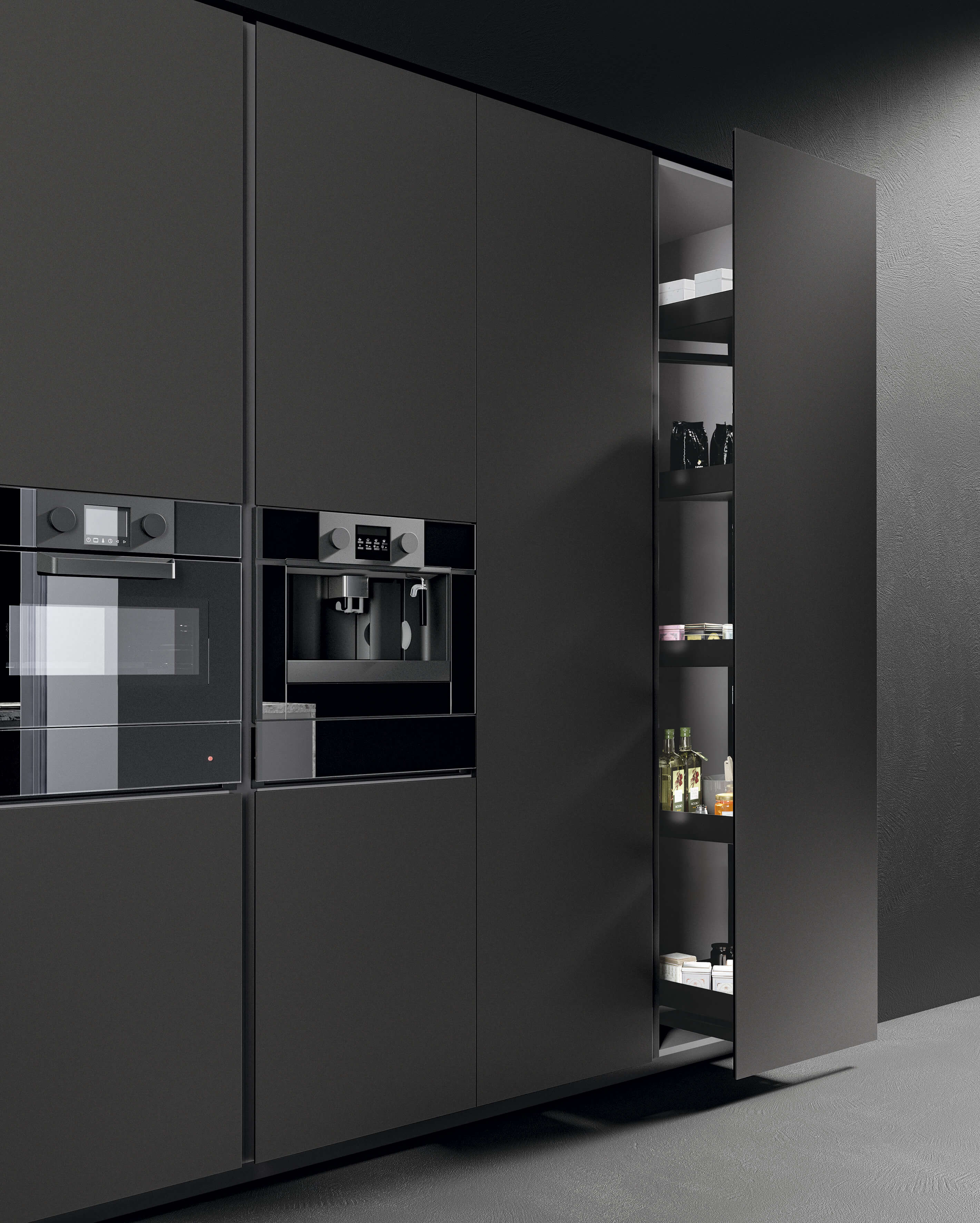 Внутреннее оснащение выдвижных ящиков, корзин и высоких шкафов — залог эффективности и организованности на кухне. Практичность использования выходит на новый уровень без ущерба для изысканной эстетики композиции. Каждая деталь тщательно продумана, а широкий выбор аксессуаров позволяет персонализировать и оптимизировать пространство, повышая практичность, эффективность и удобство использования кухни.